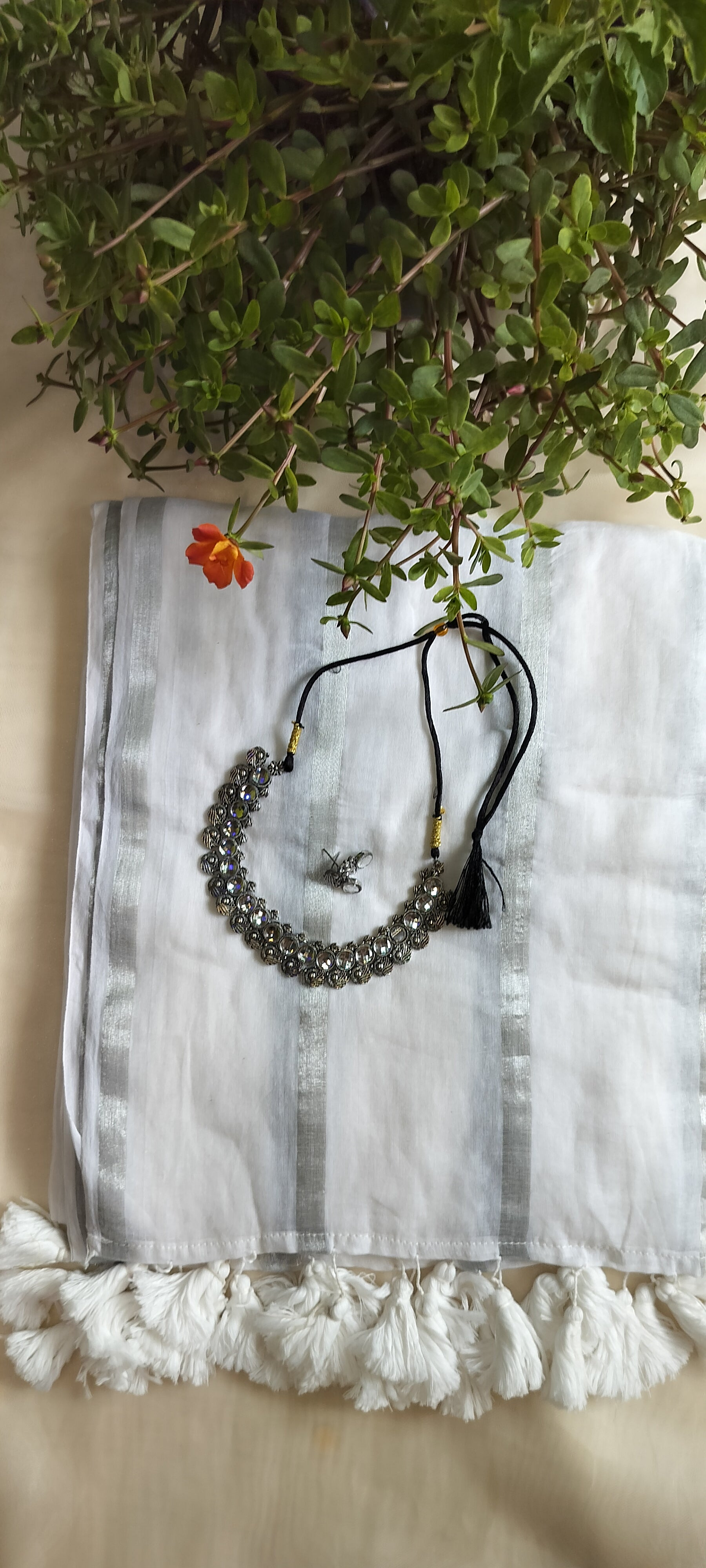 🤍🩶Classic White with subtle Silver Zari stripes🕊️