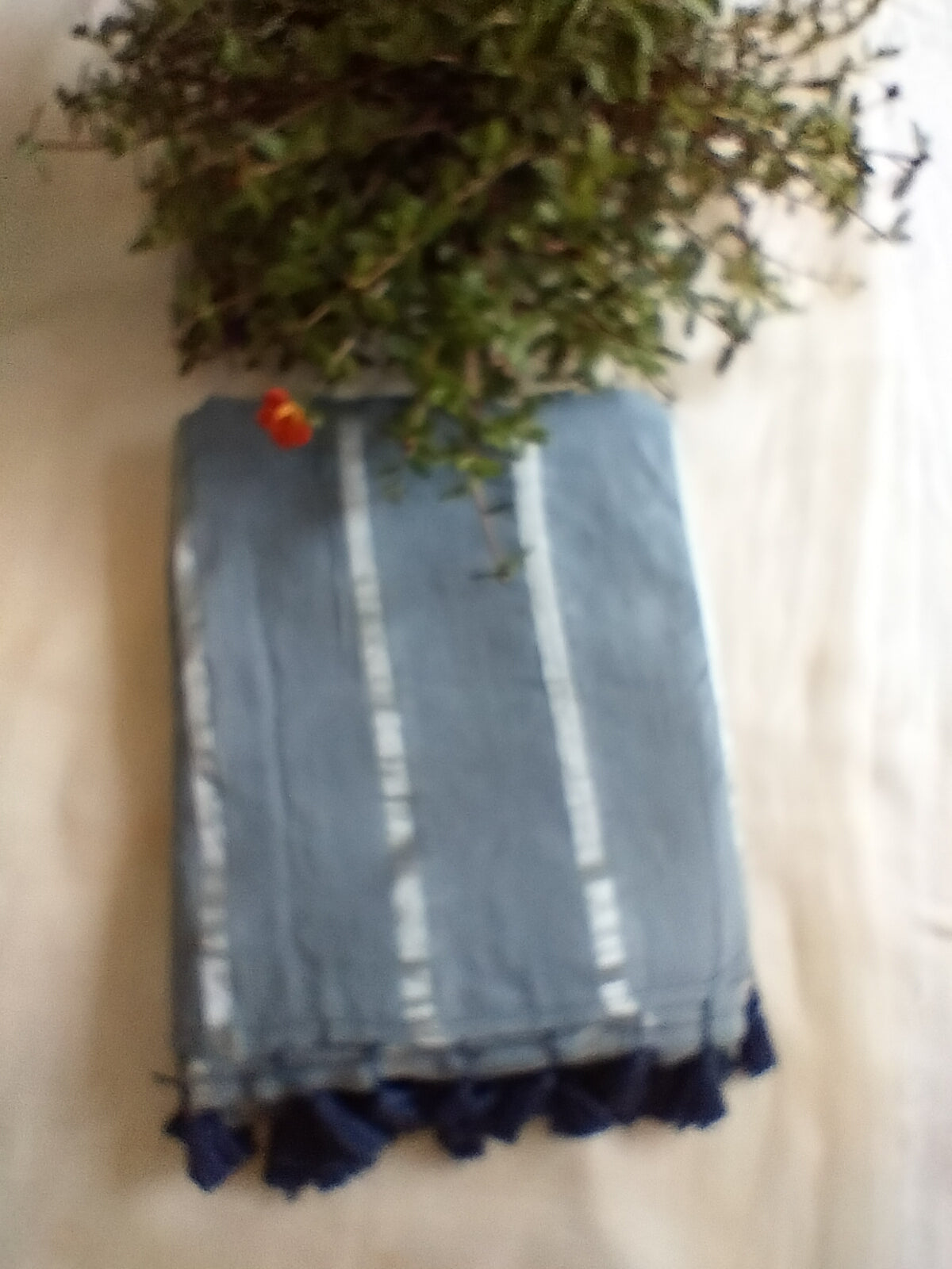 Elevate your ethnic wardrobe with this elegant Grey Mul Cotton Saree, designed for comfort and grace. Crafted from soft mulmul cotton, this saree feels feather-light on the skin, making it perfect for long hours of wear. The subtle grey base is beautifully highlighted with delicate silver zari stripes and tassel details, giving it a touch of sophistication.